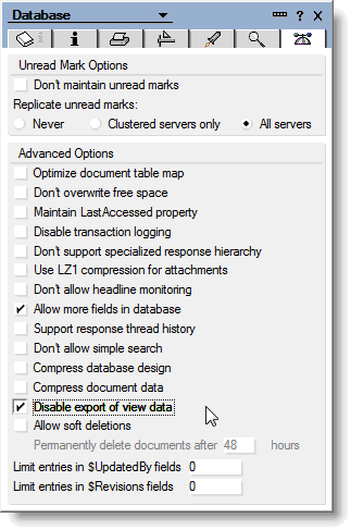 Pulsa en las propiedades de la base de datos y en icono de Opciones avanzadas.